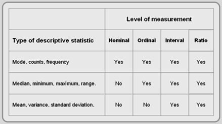 Các loại thang đo của các biến số khác nhau sẽ ảnh hưởng đến kỹ thuật thống kê có thể áp dụng. Về cơ bản, có 4 loại thang đo: