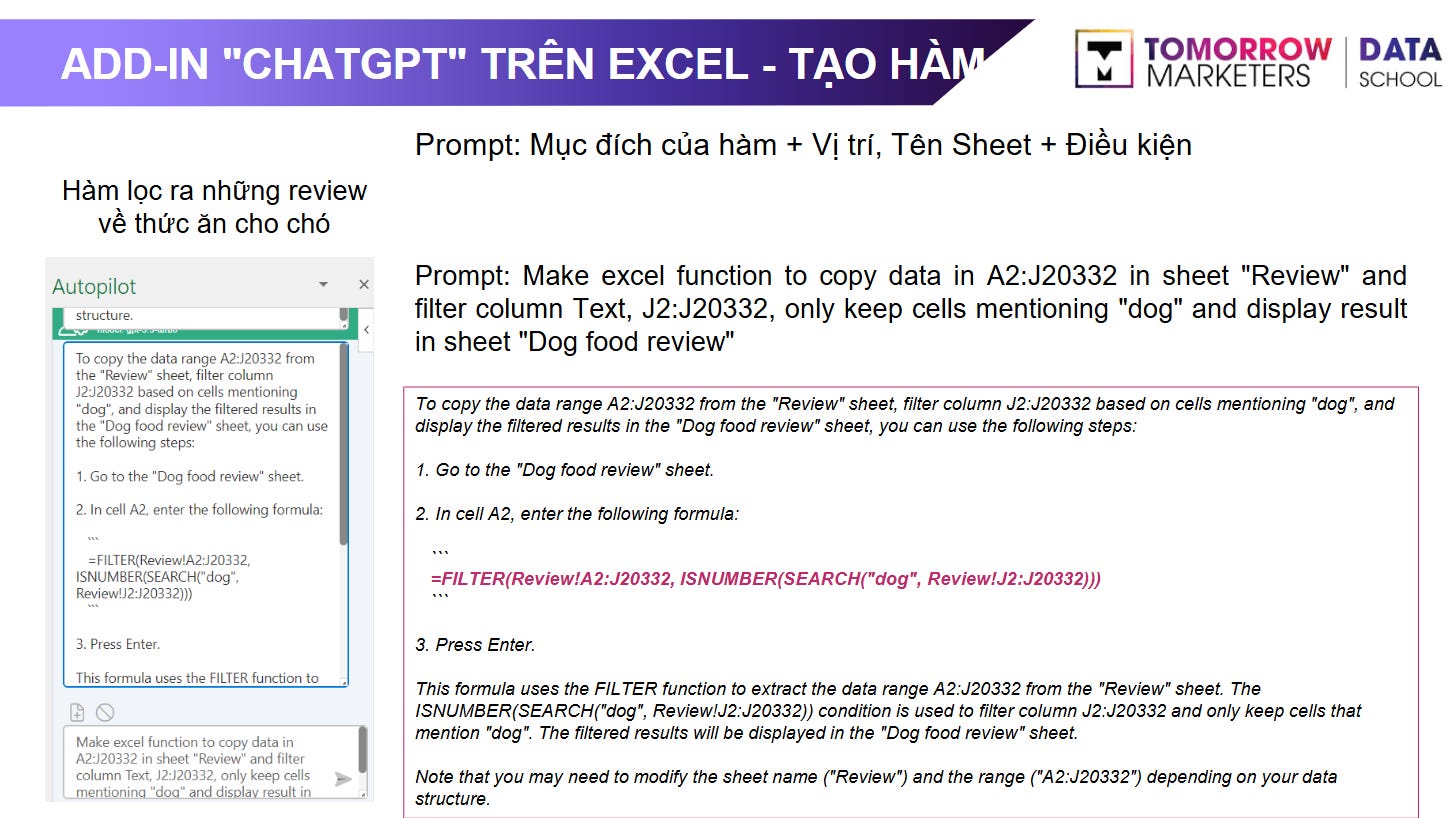 Slide minh họa ứng dụng AI để xử lý dữ liệu trên Excel - Được dạy trong học phần Data Analysis của lộ trình Professional Data Analyst Program
