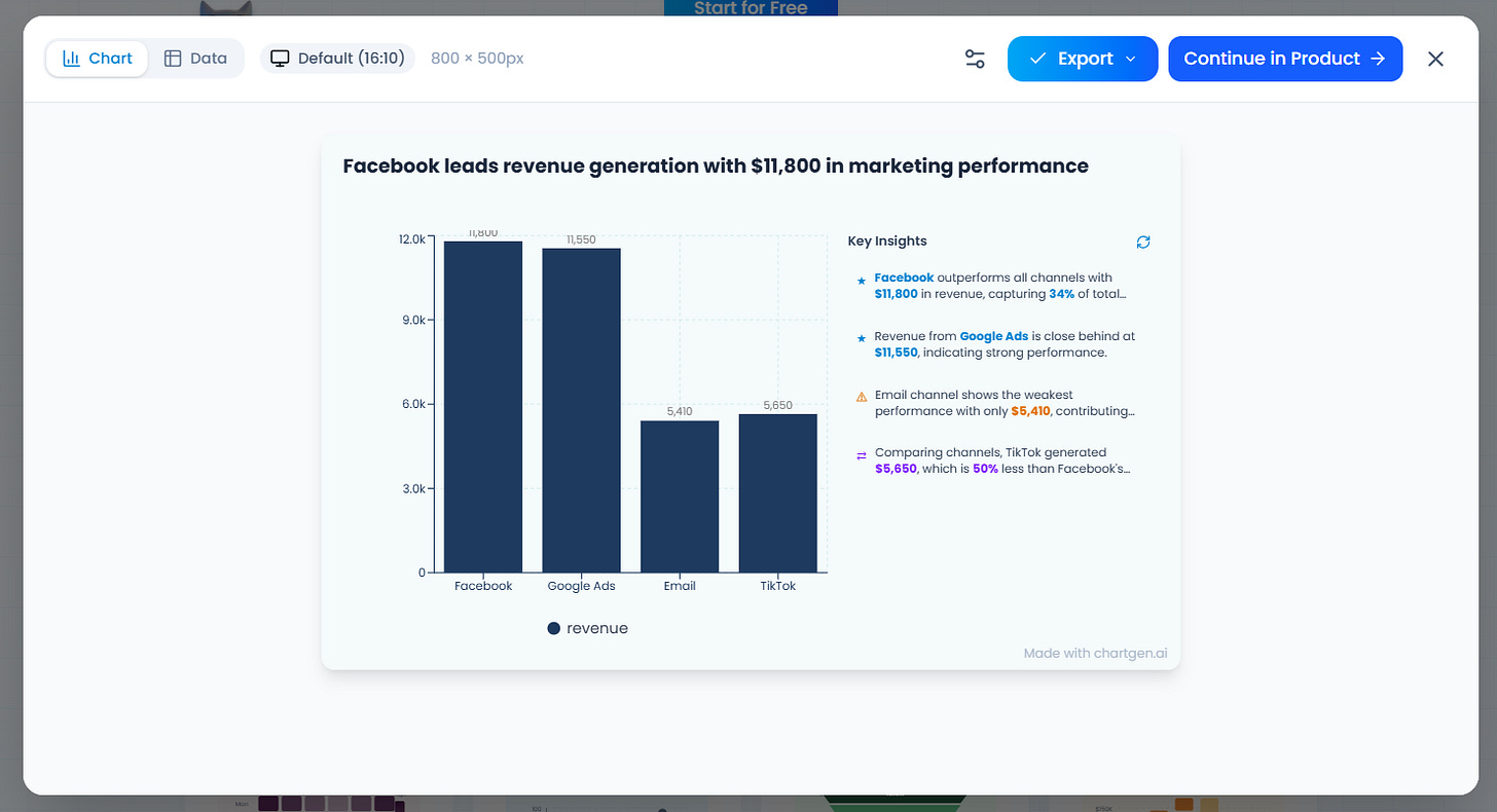 Hình dưới là mình bảo ChatGPT fake một chút data, sau đó bỏ vào 1 tool AI để nhờ nó suggest chart & phân tích cơ bản.