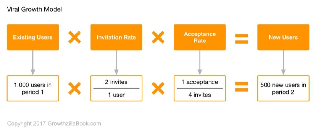 Giả sử, nếu doanh nghiệp có 1,000 người dùng trong giai đoạn đầu, và mỗi người dùng có thể mời trung bình hai người tham gia, sẽ có 2,000 lời mời tham gia ứng dụng được gửi đi. Tuy nhiên, chỉ có 1/4 số lượng lời mời được đồng ý, tương đương với 500 người dùng mới ở giai đoạn 2. Doanh nghiệp sẽ có tổng cộng là 1,500 người dùng ở giai đoạn 2, và vòng lặp đó sẽ tiếp tục.