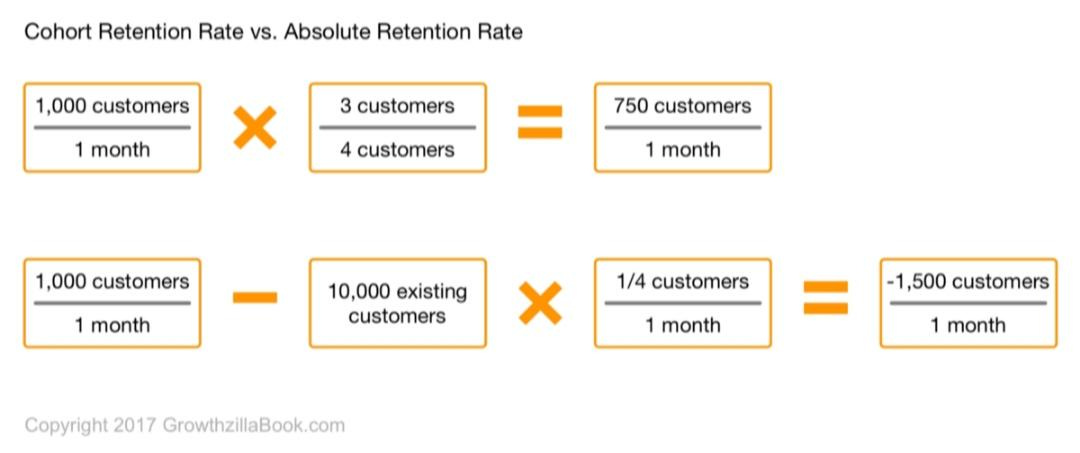 Giả sử, bạn thu hút được 1,000 khách hàng mới trong một tháng và 75% nhóm người dùng này vẫn sử dụng dịch vụ công ty trong tháng thứ hai. Nếu tính riêng lẻ theo nhóm khách hàng này mà không xét tới tổng số khách hàng, kết quả tính toán là bạn sẽ giữ chân được 750/1,000 khách hàng trong tháng thứ hai. Retention rate = 75%