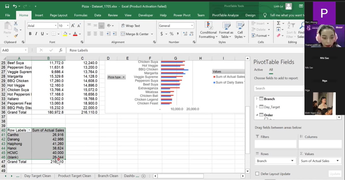Sử dụng PivotTable để tạo biểu đồ - Một phần trong khoá học Data Visualization & Analytics with Excel