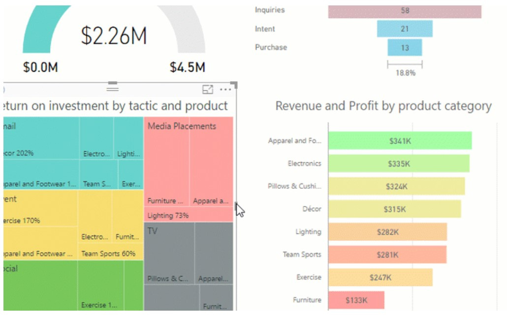 Phân tích linh hoạt và đa chiều: Power BI giúp bạn dễ dàng phân tích và khám phá dữ liệu từ nhiều góc độ khác nhau với các công cụ phân tích mạnh mẽ như bảng ma trận, issue trees, và yếu tố ảnh hưởng chính.