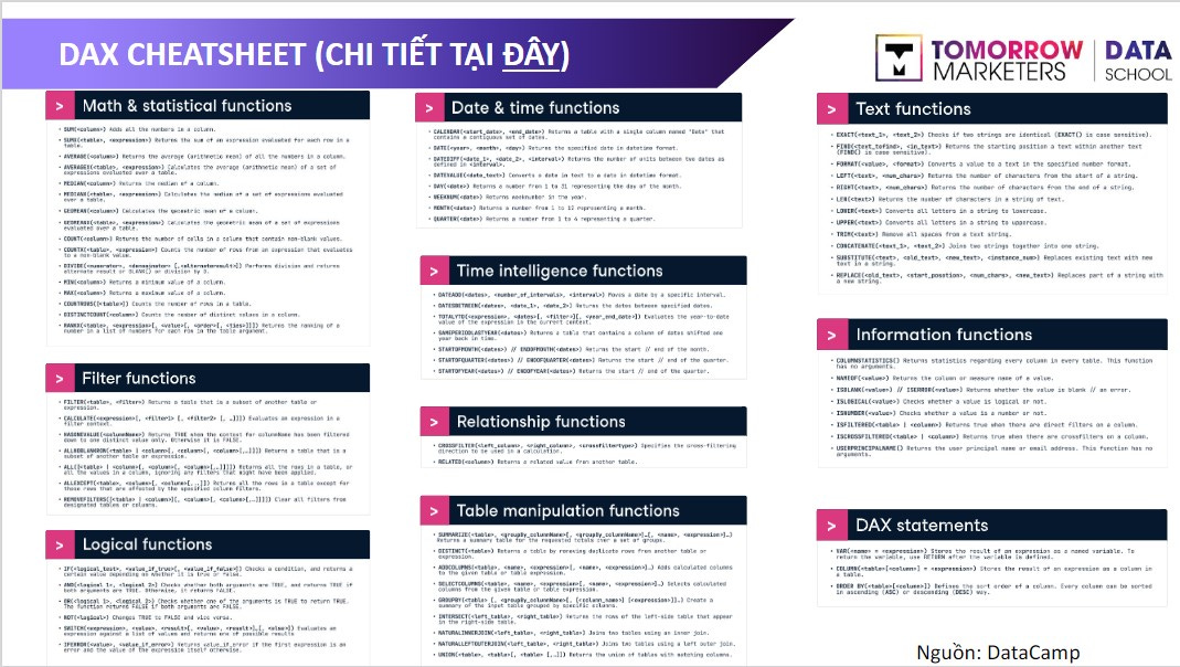 DAX Cheat Sheet - Slide khóa học Data Analysis with Power BI | Tableau