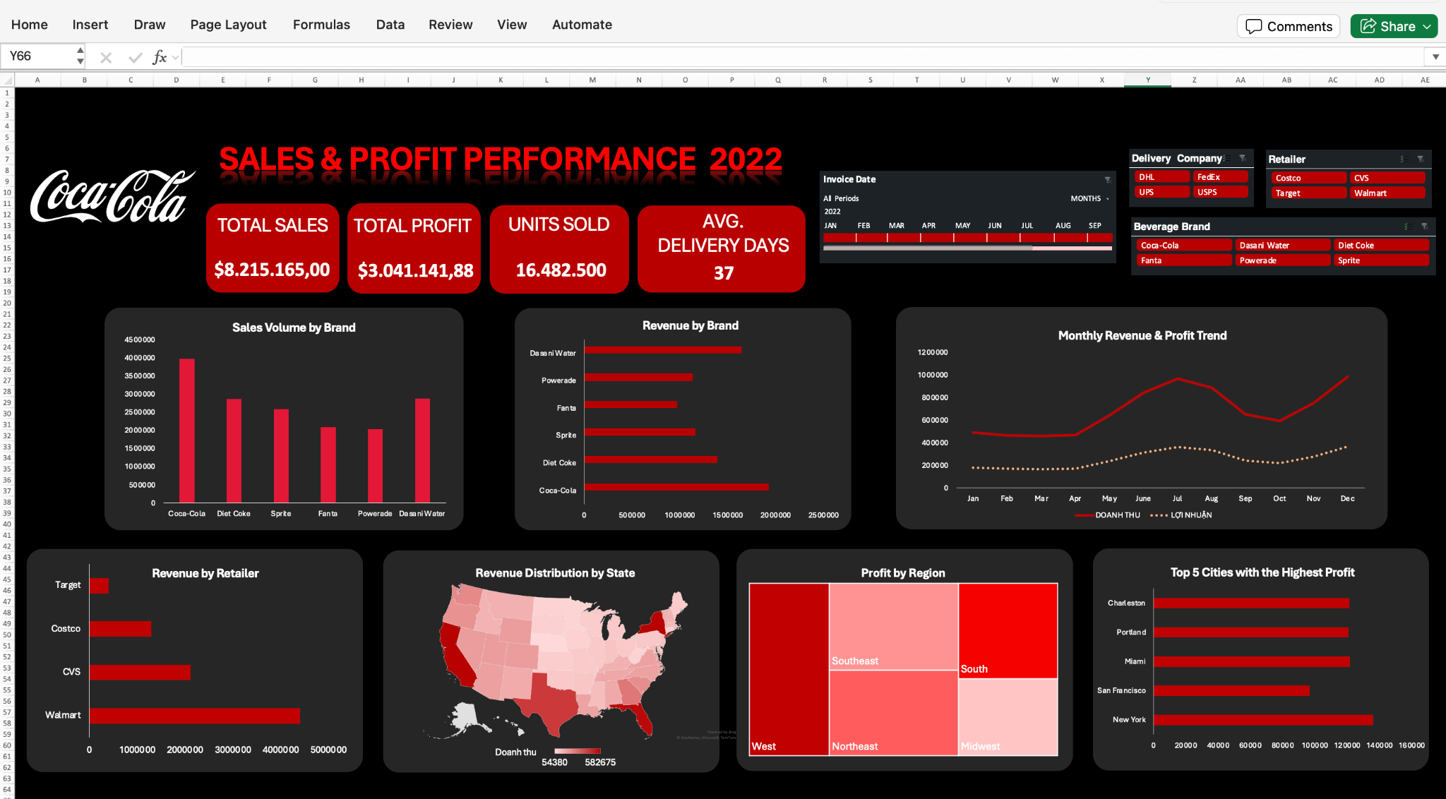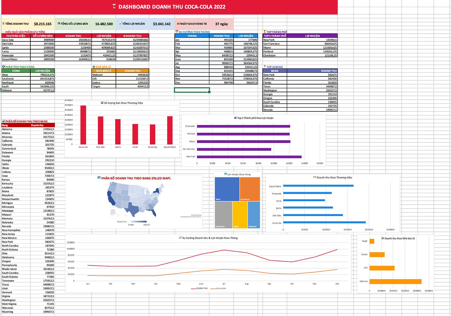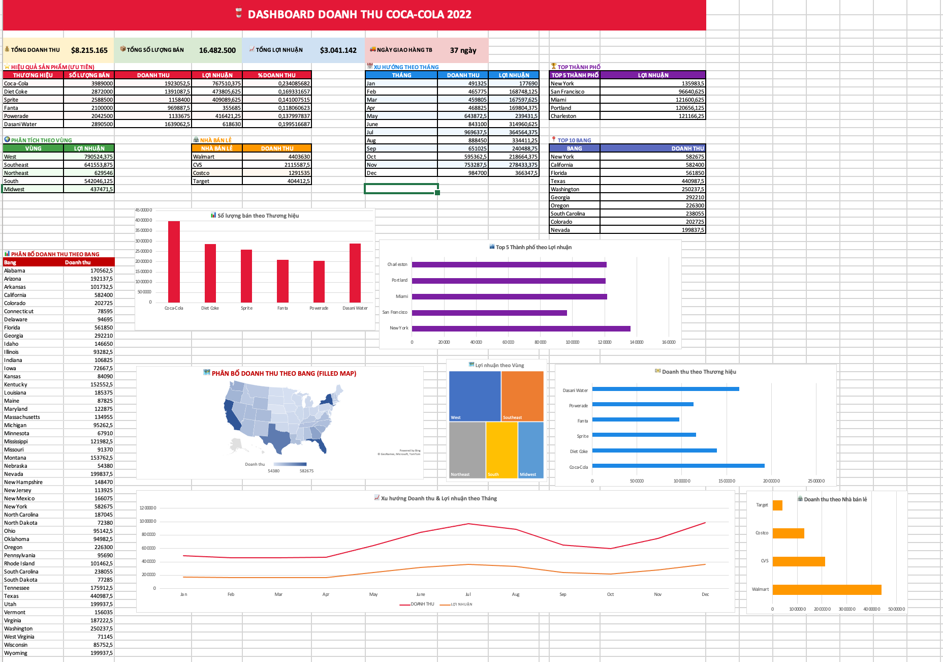 “Dựa vào các thông tin trên, hãy tạo giúp mình một bản Dashboard hoàn chỉnh. Tạo sang một sheet khác và đặt tên là ‘Dashboard Coca-Cola 2022”.