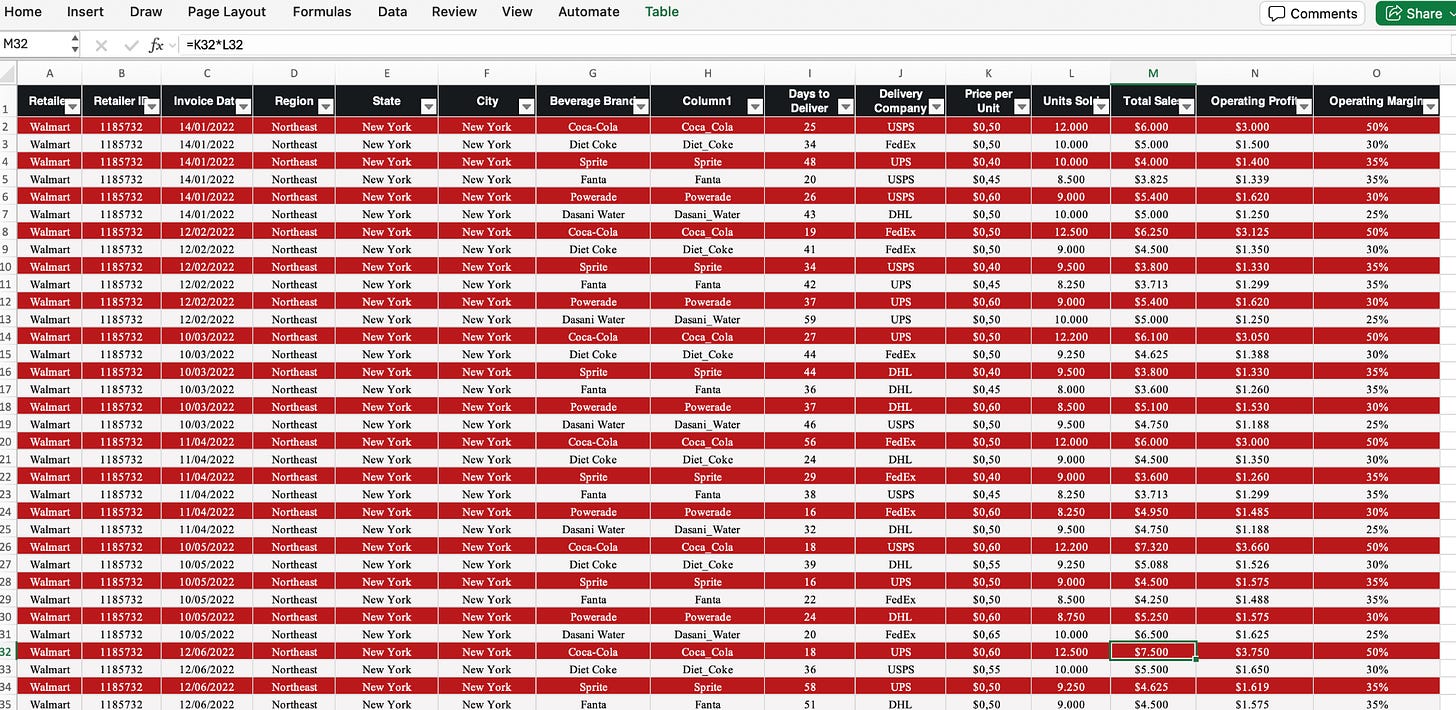 “Từ bảng dữ liệu ‘Updated data sheet’, mình cần tạo một báo cáo trực quan để theo dõi tình hình doanh thu các sản phẩm của Coca-Cola năm 2022. Hãy cho mình biết những thông tin quan trọng nào cần được cho vào trong báo cáo?”
