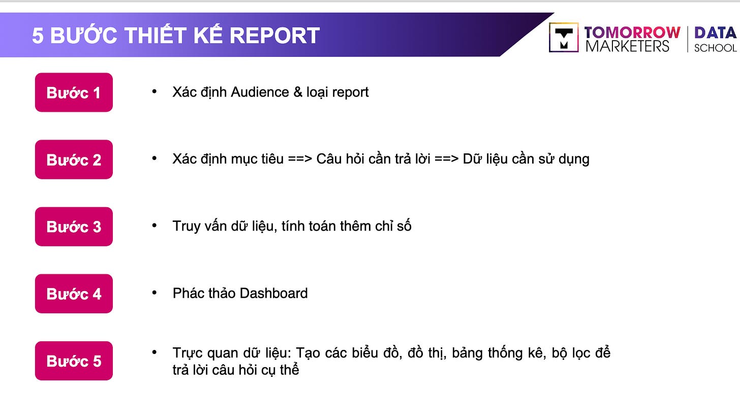 Tham khảo 5 bước thiết kế report logic - Slide thuộc khóa học Data Visualization & Analytics with Excel