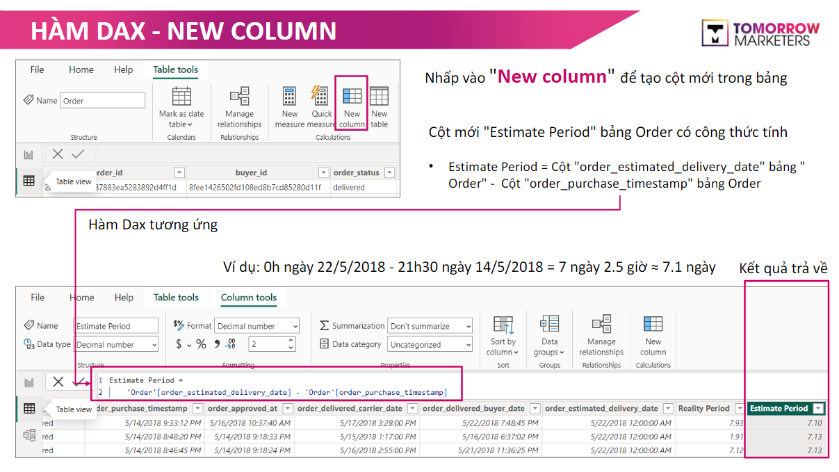 Hướng dẫn tạo column mới với DAX - Slide khóa học Data Analysis with Power BI | Tableau