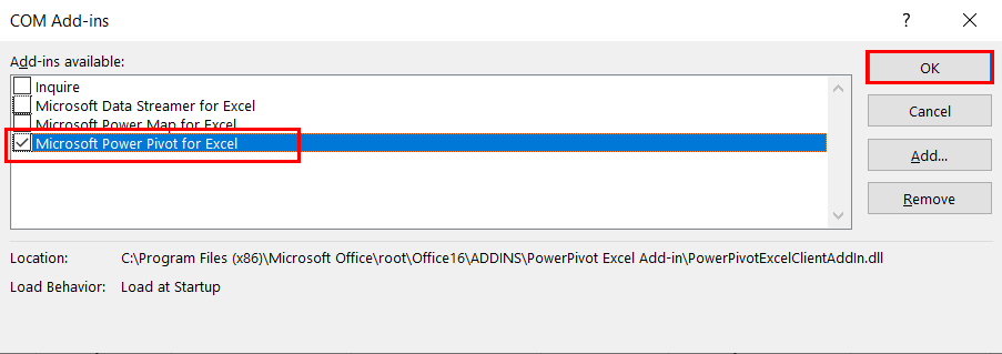 Đánh dấu chọn Microsoft Power Pivot for Excel và nhấn OK.