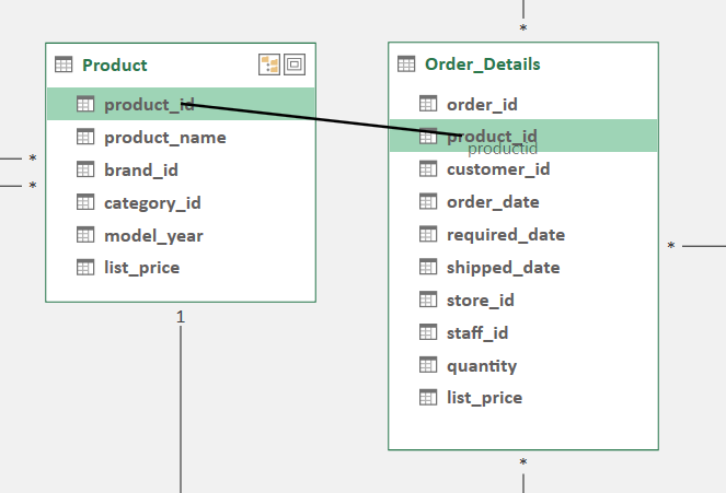 Ví dụ, kéo cột product_id từ bảng Product sang cột product_id trong bảng Order_Details để thiết lập mối quan hệ giữa 2 bảng này.
