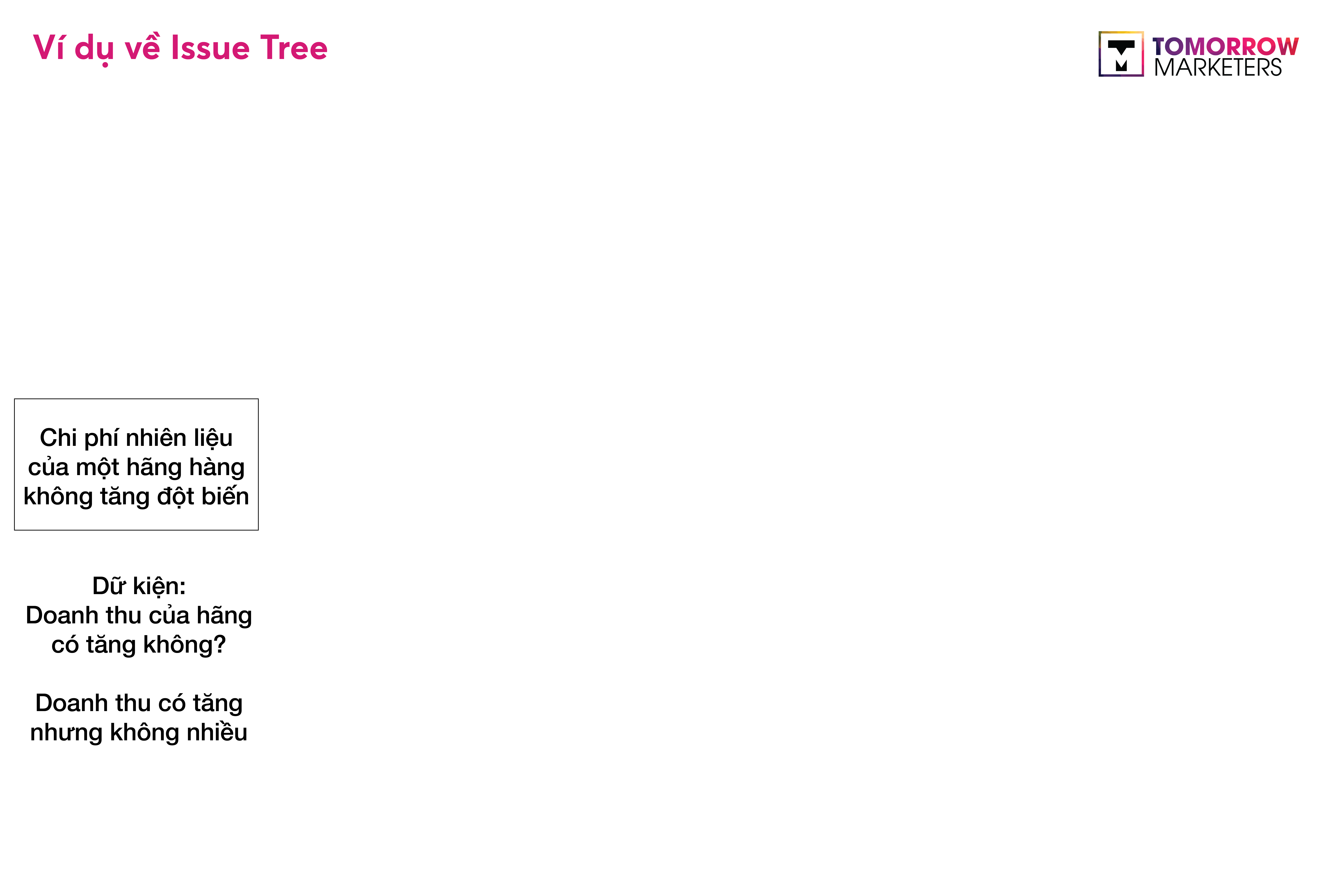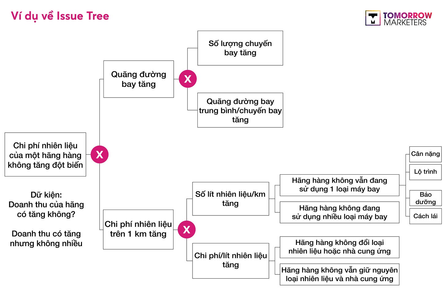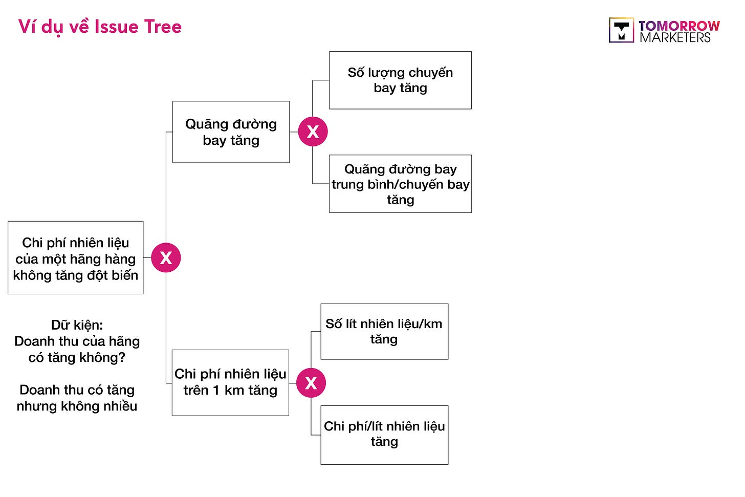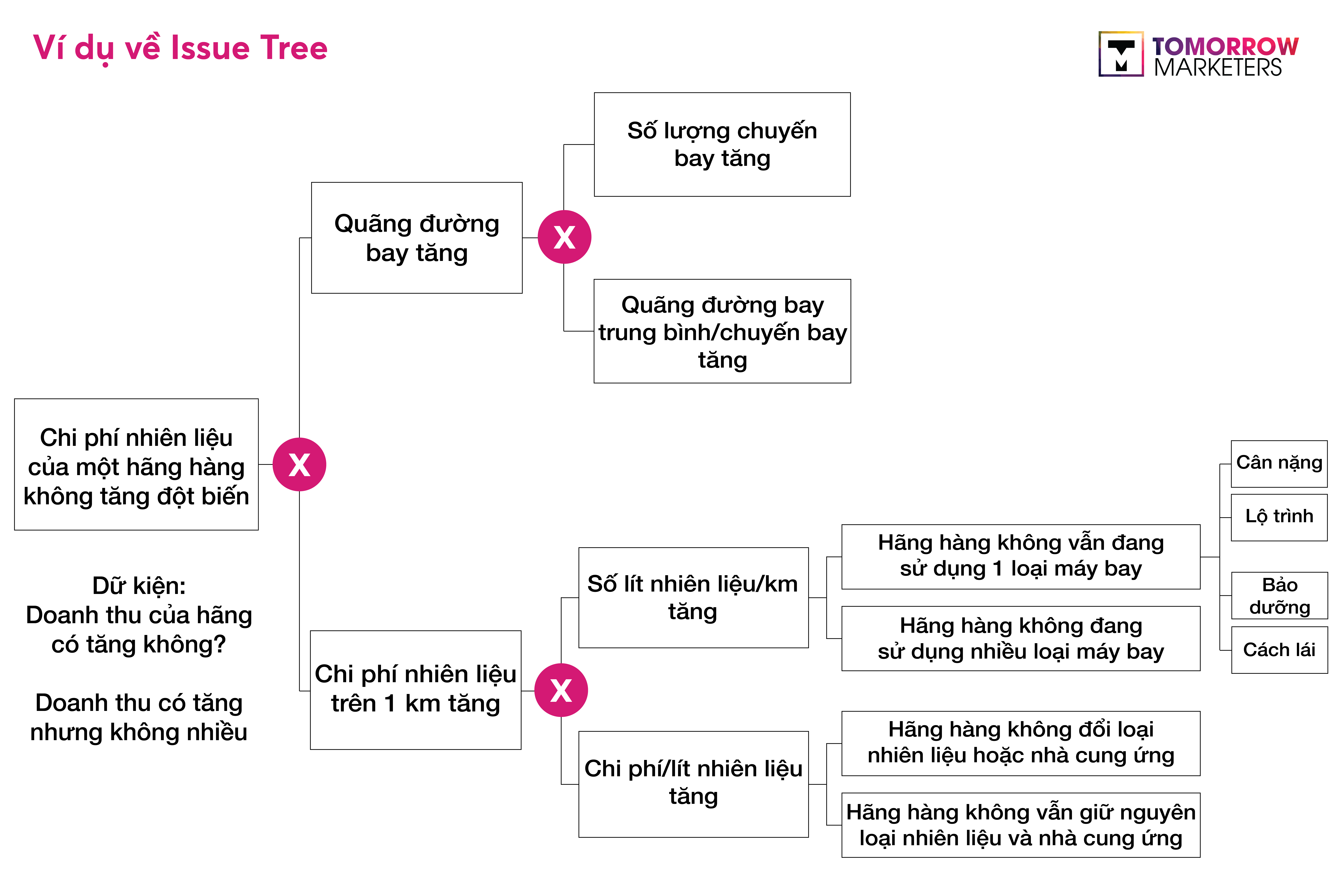 Như bạn có thể thấy, ở tầng thứ 2, người lập Issue Tree đã chọn việc không phát triển tiếp các nhóm giả thuyết ở nhánh “Quãng đường bay tăng”.