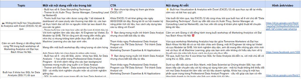 Ví dụ về việc ứng dụng ChatGPT/Gemini làm content chạy ads được thực nghiệm trong lớp AI Marketing tại TM AI