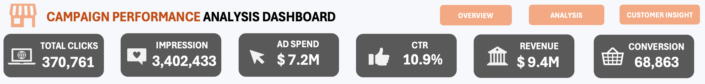 Trong phần này, các bạn cũng cần phải đưa ra một vài chỉ số quan trọng (Key Cards) để giúp người xem có cái tổng quát về tình hình và hiệu quả của chiến dịch. Ví dụ: