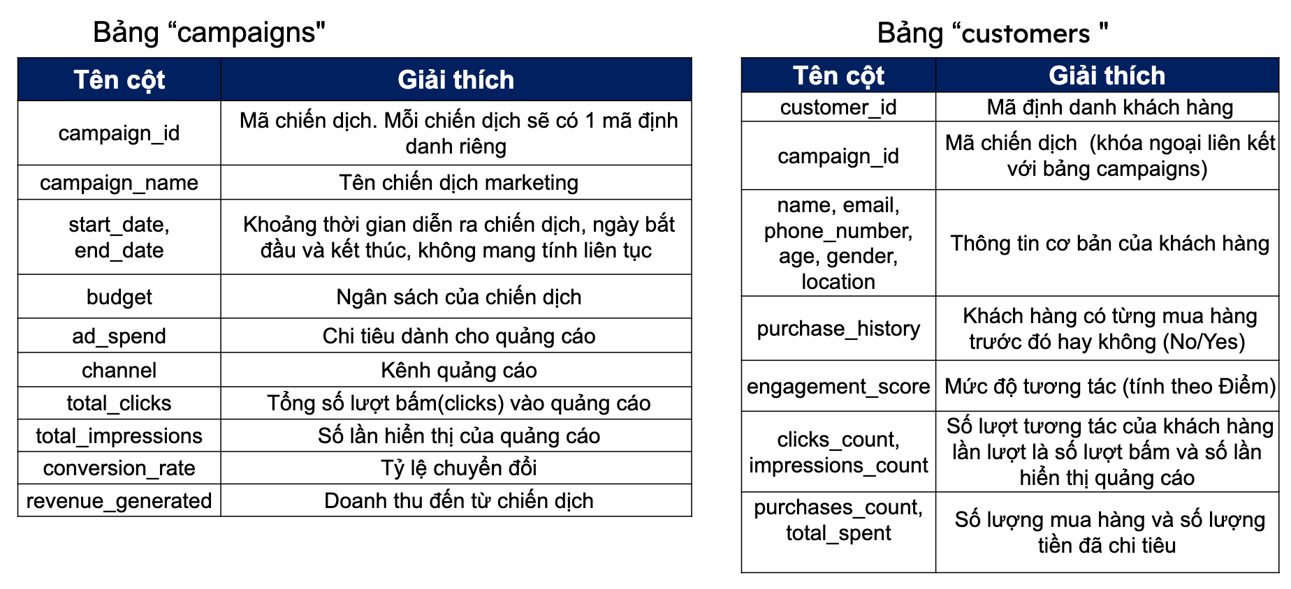 Dựa vào bảng “Campaign” dưới đây, mình có chọn những chỉ số để đánh giá hiệu quả của từng chiến dịch: