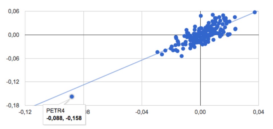 Một mô hình dự đoán có thể dễ dàng suy ra với độ chính xác cao rằng chỉ số thị trường chứng khoán giảm 9% sẽ tương ứng với việc giá cổ phiếu của Petrobras giảm 15%. Một trường hợp khác, vẫn với dữ liệu từ thị trường chứng khoán Brazil, cổ phiếu của công ty Magazine Luiza tăng giá 30,8% trong một ngày mà chỉ số thị trường chứng khoán chỉ tăng 0,7%.