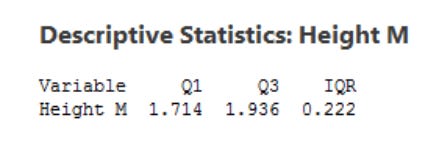 Ví dụ, tập dữ liệu dưới đây có giá trị Q1 là 1.714 và giá trị Q3 là 1.936. Giá trị IQR sẽ được tính bằng 1.936 – 1.714 = 0.222.