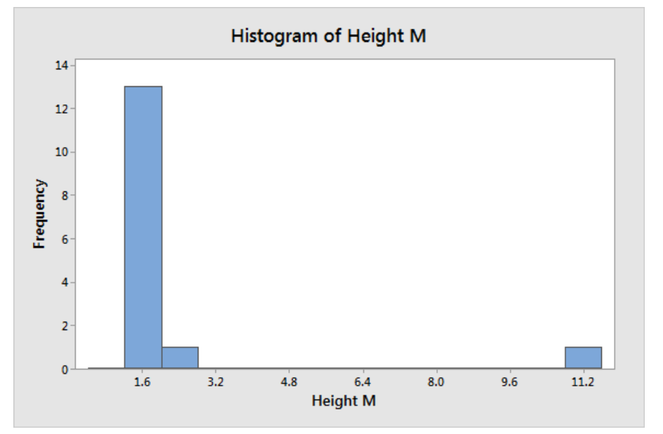 Z-score của chúng tôi ~3,6 gần với giá trị tối đa đối với cỡ mẫu là 15. Cỡ mẫu từ 10 giá trị trở xuống không thể có Z-score vượt quá giá trị ngưỡng +/-3.