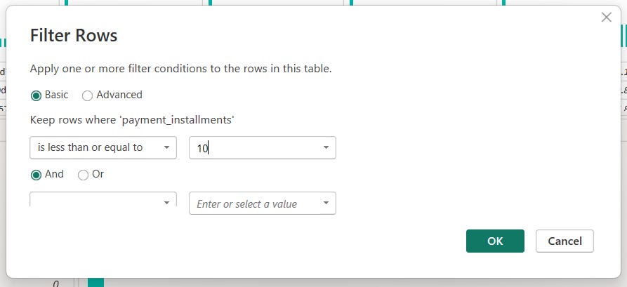 Sau đó nhập điều kiện Filter vào. Ở đây ví dụ bạn muốn loại bỏ giá trị 15, chọn “is less than or equal to” và điền giá trị 10, sau đó nhấn “OK”. Vậy là bạn đã loại bỏ được giá trị ngoại lai ra khỏi bảng dữ liệu của mình.