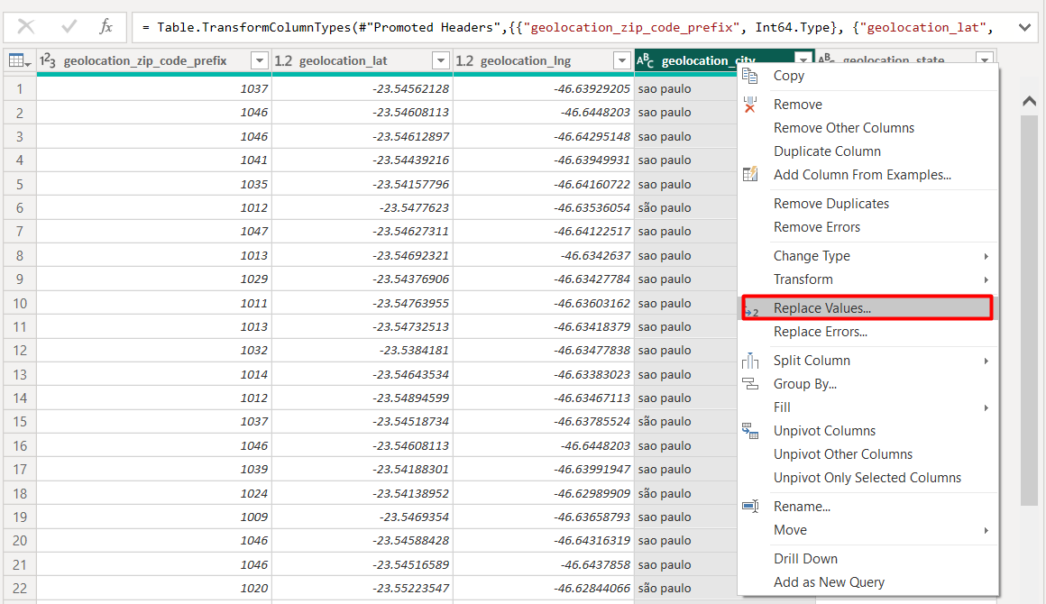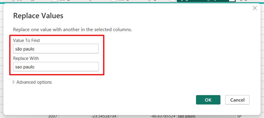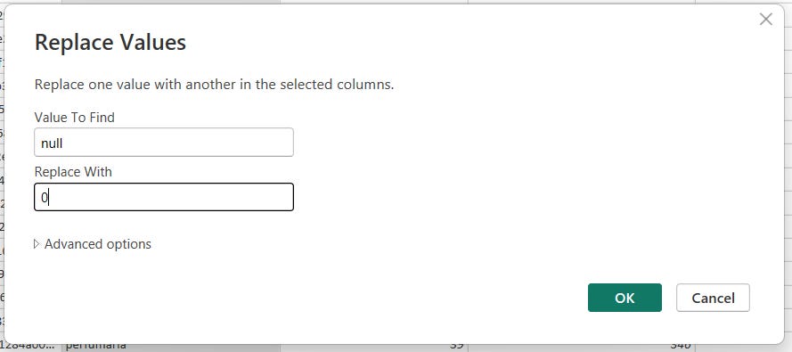 Ngoài ra bạn cũng có thể xử lý lỗi Missing Value bằng cách thay thế giá trị bị thiếu bằng giá trị khác với tính năng “Replace Value” ở trên. Ở mục “Value To Find” bạn sẽ nhập chữ null và ở “Replace With” bạn sẽ nhập giá trị muốn thay thế.