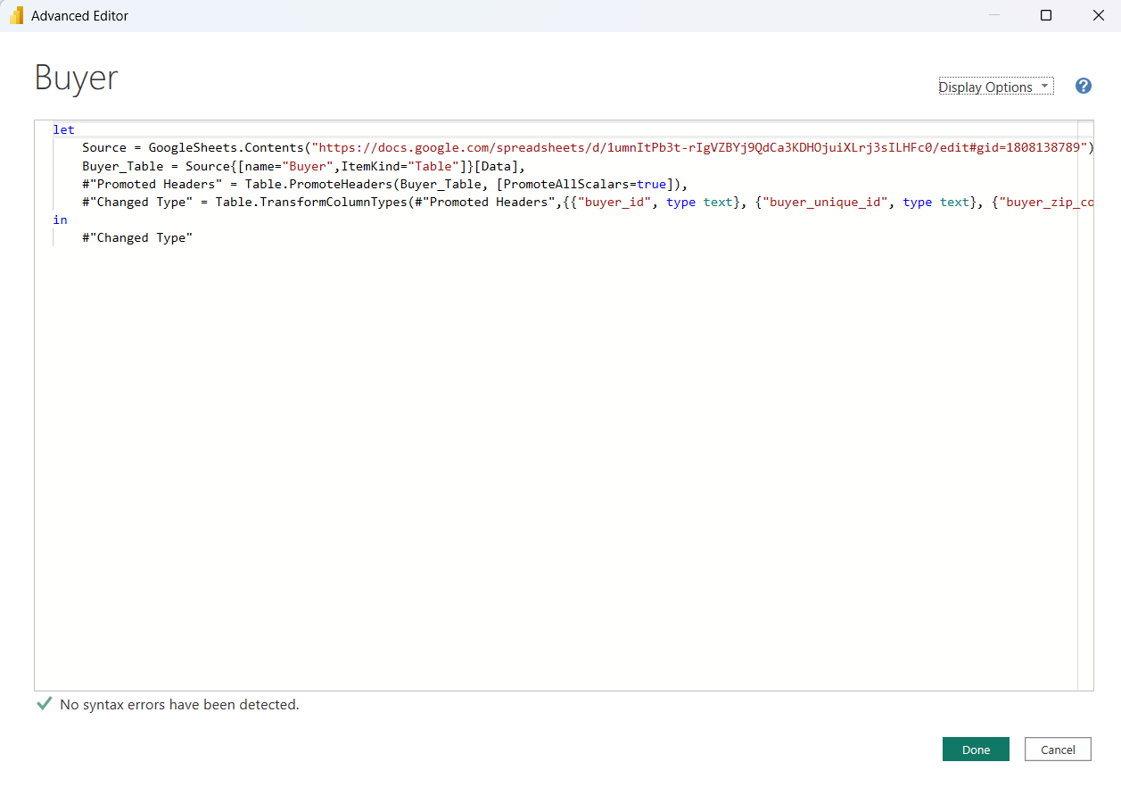 Câu lệnh M Query được tạo ra khi thực hiện thao tác Promoted Headers