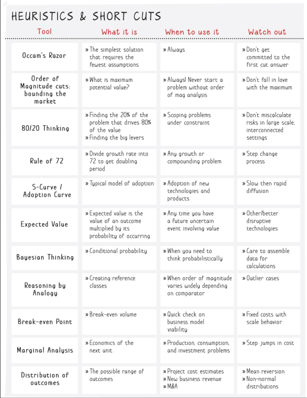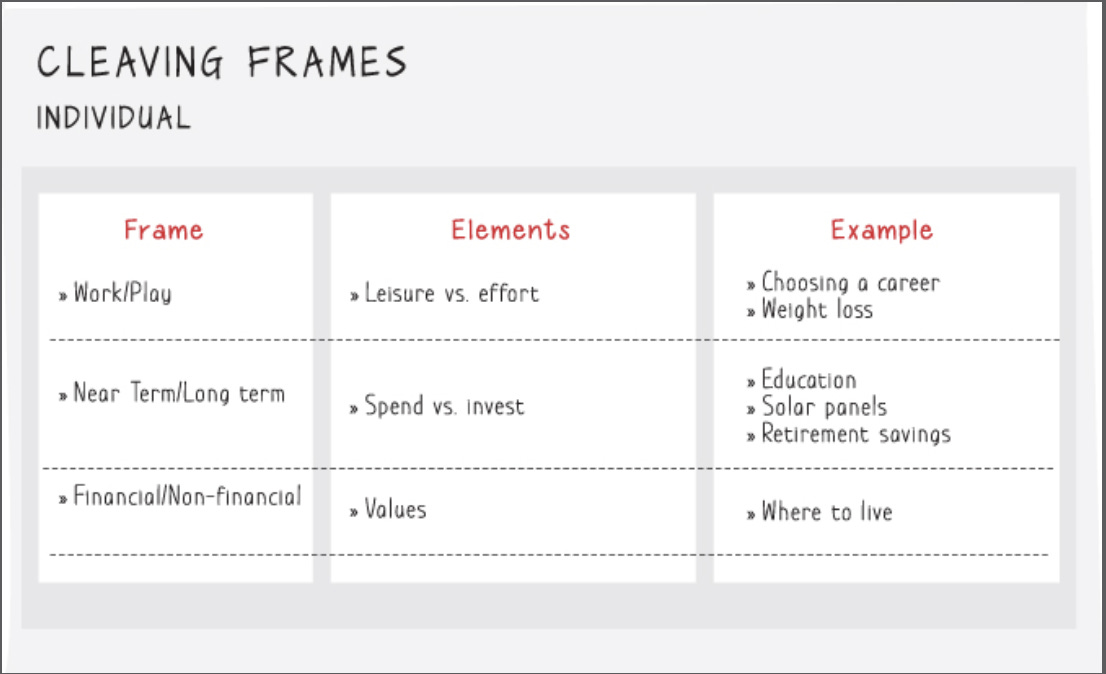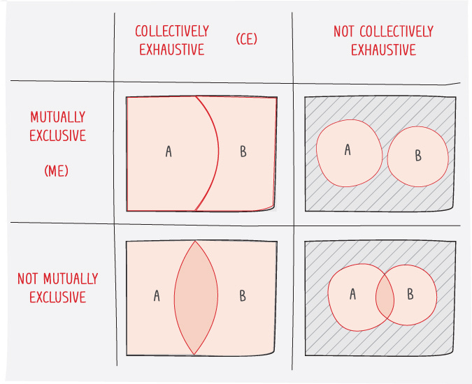 Khung khái niệm: chia nhỏ vấn đề theo các ý tưởng để giải vấn đề, ví dụ theo framework 3C (khách hàng, đối thủ cạnh tranh, công ty) hoặc theo 4P (sản phẩm, giá cả, phân phối, xúc tiến)