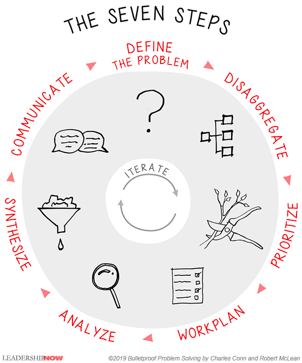 Hầu hết các framework problem-solving đều có một số bước tương đồng. Trong đó, bài viết sẽ tập trung một trong các quy trình giải quyết vấn đề nổi tiếng và được nhiều người áp dụng: khung giải quyết vấn đề sáng tạo của Charles Conn và Rob McLean trong cuốn sách The Bulletproof Problem Solving.
