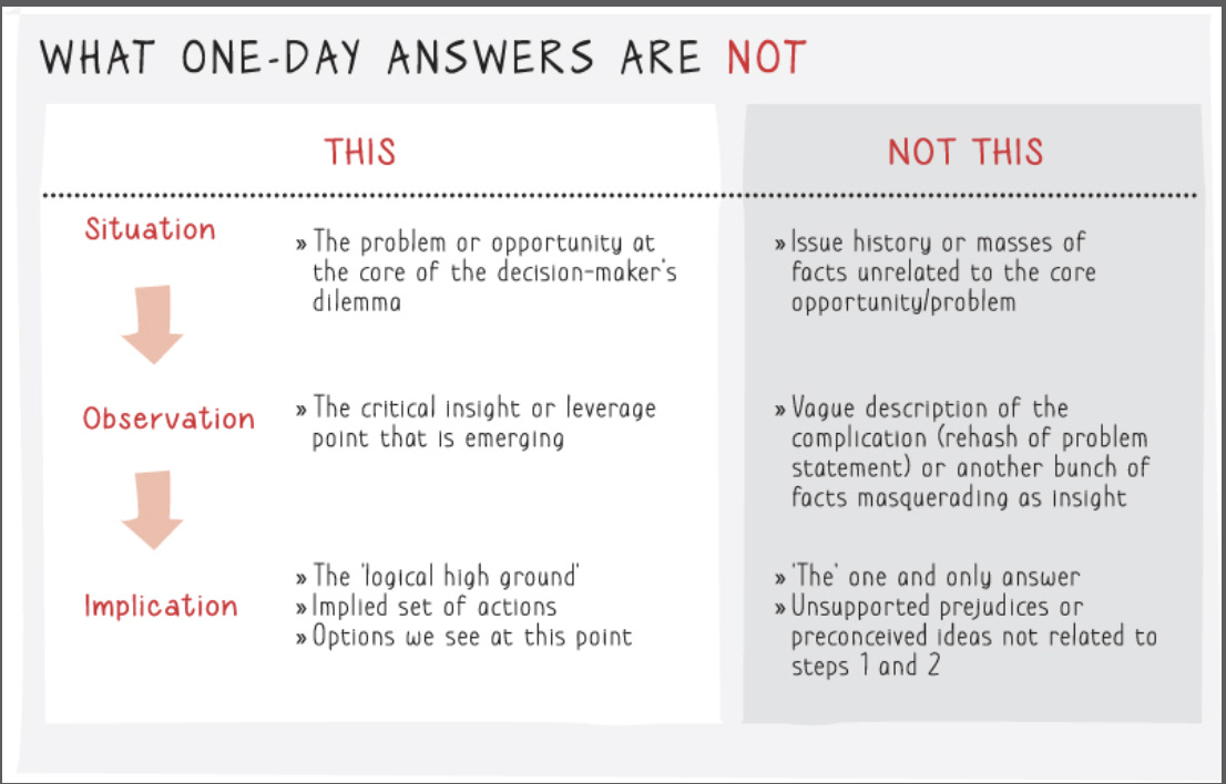 Sau khi có kế hoạch, bạn có thể cấu trúc thành "One Day Answers" để tổng hợp kiến thức và ngữ cảnh để đảm bảo các phân tích đang đi đúng vấn đề: